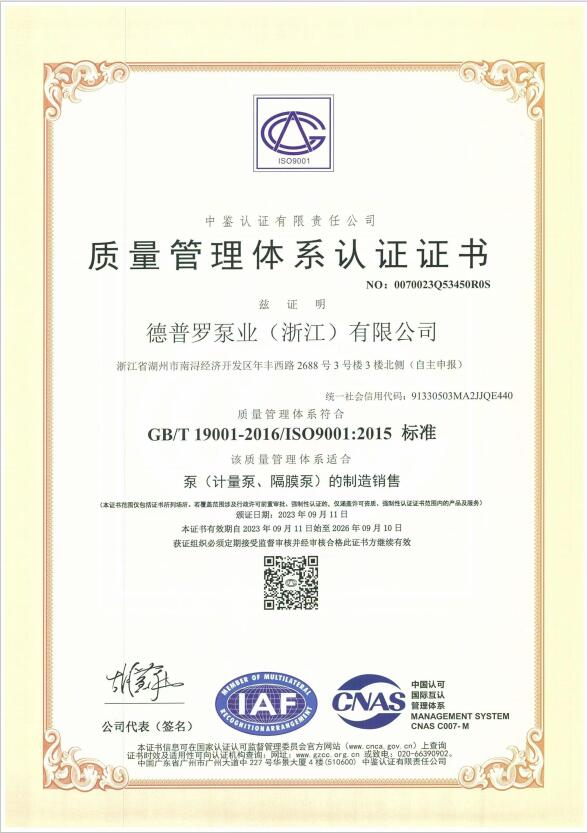 質量管理體系認證證書(中文版)